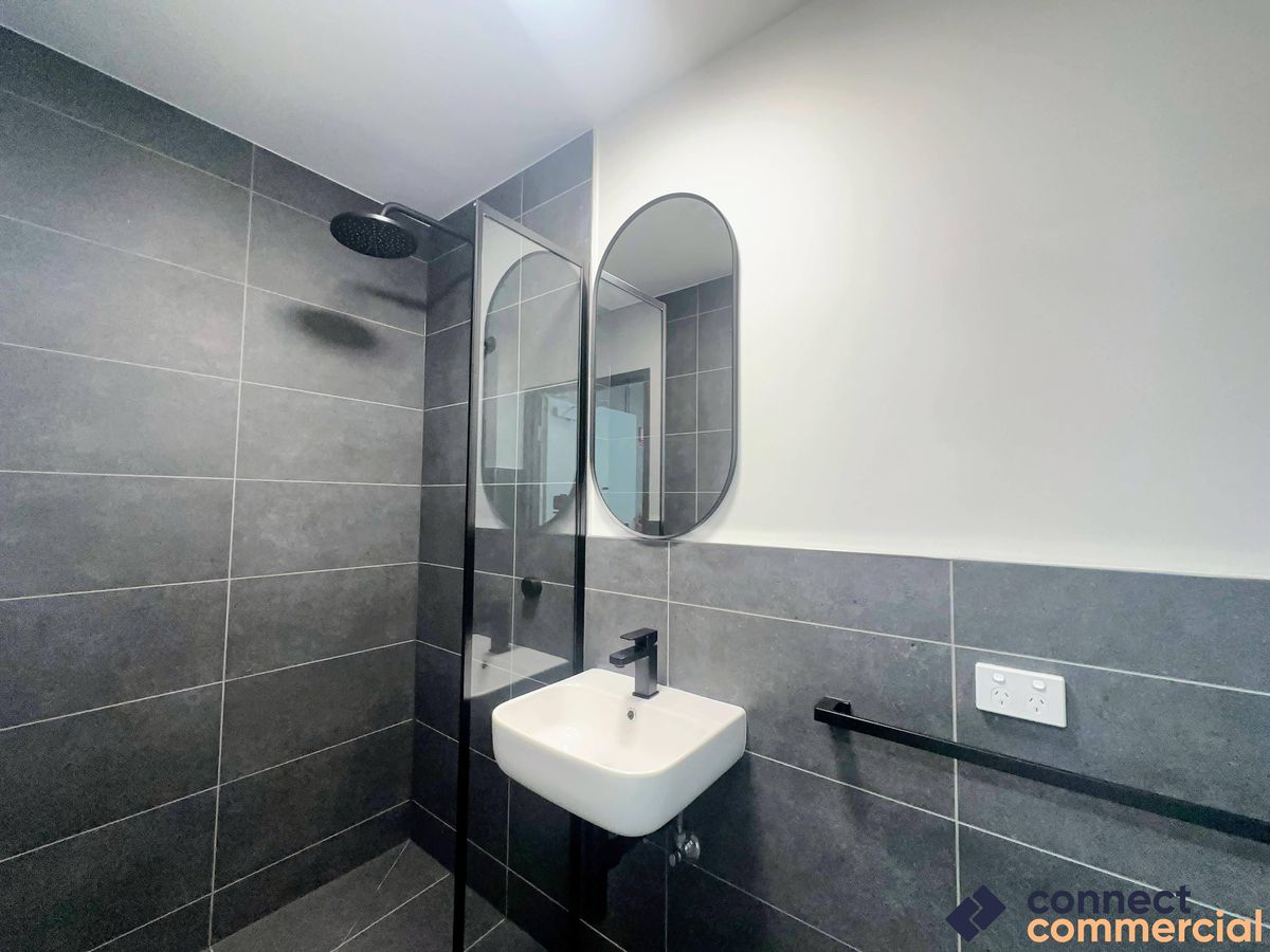The space includes a high-access roller door offering future flexibility, a ground floor kitchenette, modern shower and ambulant toilet, and air conditioning throughout. Clean architectural lines, strong natural light, and quality finishes ensure the property presents well and remains competitive within the leasing market.